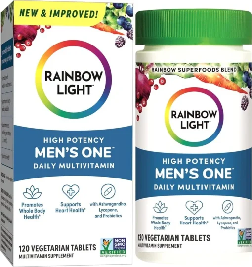 MEN??S MULTIVITAMIN: Includes one 120-count bottle of Rainbow Light Men??s One High-Potency Men??s Daily Multivitamin, a multivitamin supplement for men that promotes immune, heart and brain health